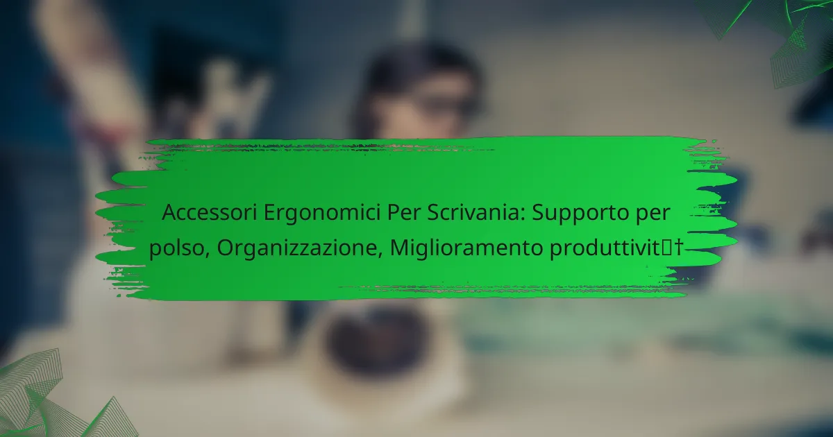 Gli accessori ergonomici per scrivania sono fondamentali per creare un ambiente di lavoro sano e produttivo. Tra questi, i supporti per polso e le soluzioni di organizzazione contribuiscono a migliorare la postura e a ridurre il rischio di infortuni. Investire in questi strumenti non solo aumenta il comfort, ma favorisce anche una maggiore efficienza durante le ore di lavoro.