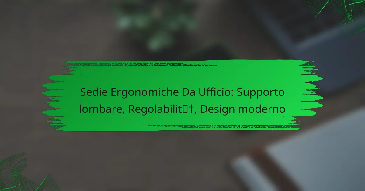 Per scegliere una sedia ergonomica da ufficio, è fondamentale considerare il supporto lombare, la regolabilità e il design moderno. Questi elementi contribuiscono a migliorare il comfort e la produttività durante le ore di lavoro.